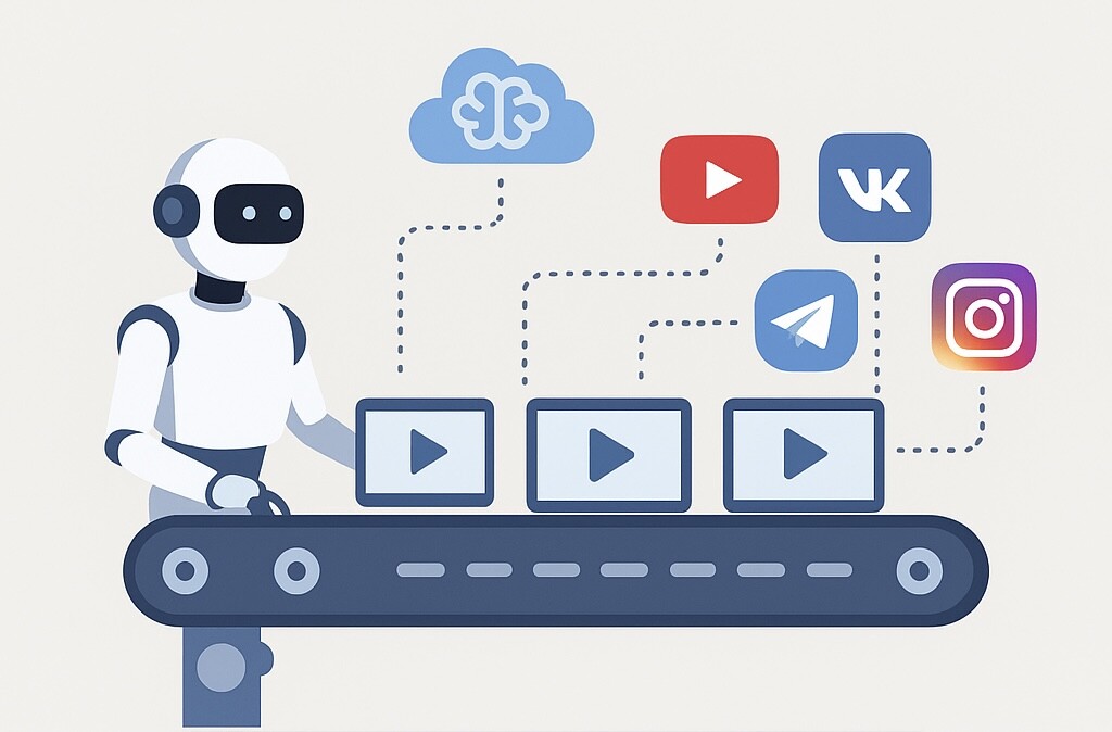 Автоматизированная система, которая пишет сценарии, создаёт экспертные и развлекательные видео и публикует их во все соцсети.